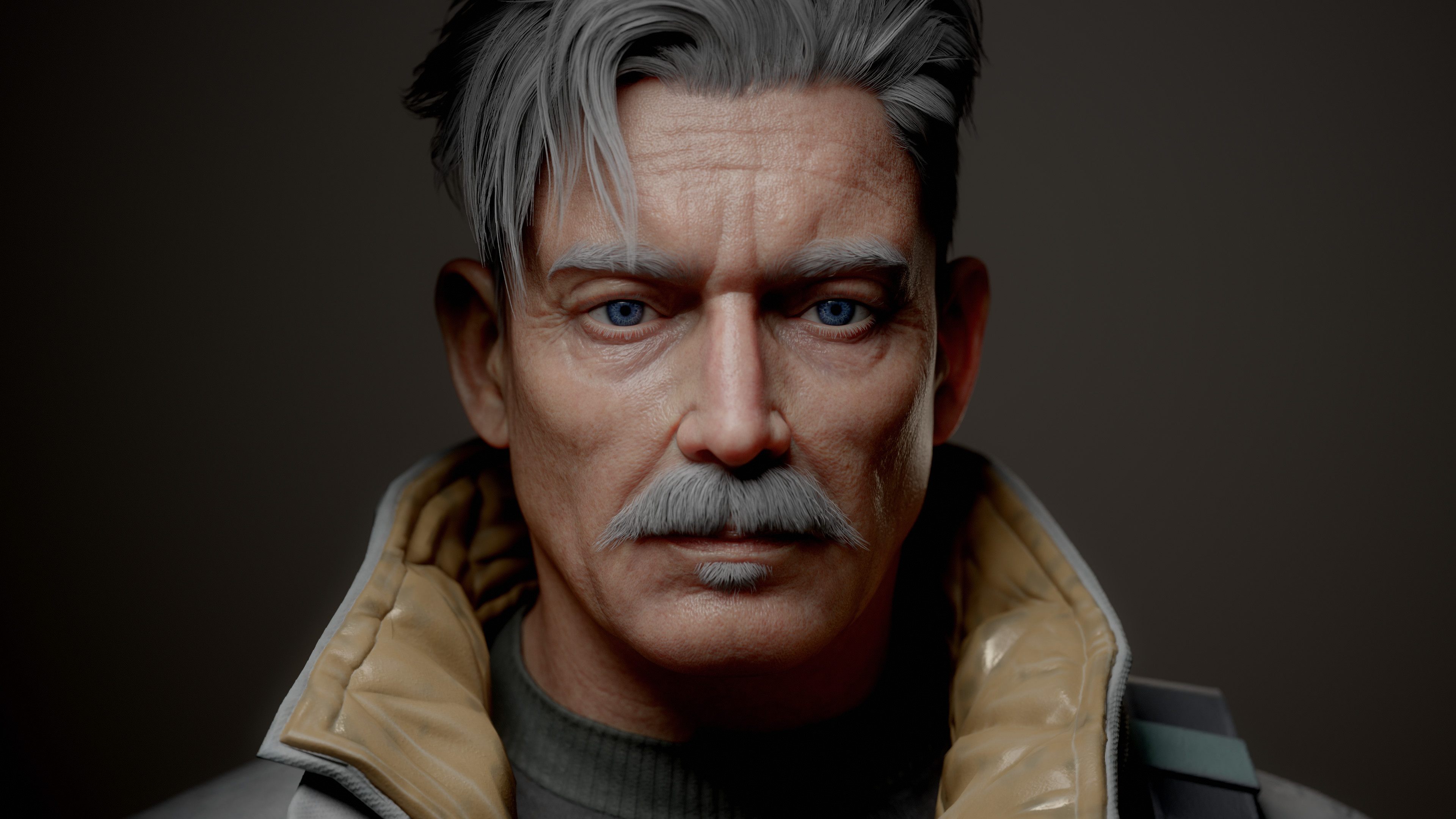 I took on all the aspects of making the head, using VFace for some scan data and then sculpting the features in ZBrush, adjusting textures in Substance Painter and then rendering everything in Unreal Engine. Big shout out to my Head of 3D Characters, Brady Parell and Lead Character Artist, Matt Corcoran for their awesome notes and art direction on this project as well as Gretchen Asmar for the rig!